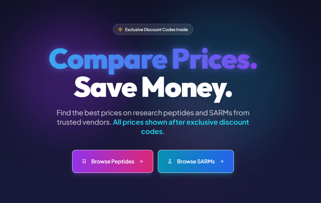 These are the companies I personally use for purchasing my SARMs, Peptides, Prohormones and other research products. These companies have Excellent Reputations, High-Quality products, Fast Shipping, Easy Checkout, and most importantly; they offer COAs (Certificates of Analysis) - verifying the products legitimacy. My using these links and codes you save money and help to support this platform. Thank you!
